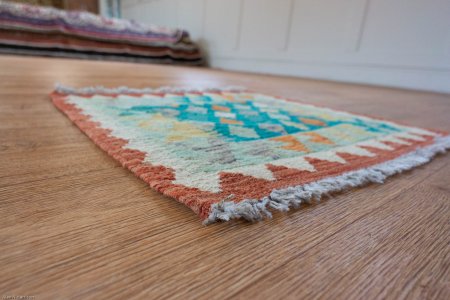 Mazar kilims are great value. They are well made by hand, flatweave wool construction and quite sturdy in use. They benefit from having no loose threads or knots on the back of the rug. This makes them double sided so when one side gets tatty you can flip them over. Customers buy these and put them to many uses. As floor or wall rugs, but also as table covers, picnic rugs, room dividers and so on. We use mazar kilims to cover the Kilim stools that we make.