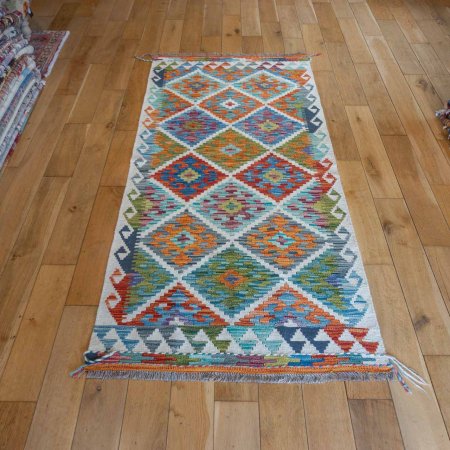 This Hand-made Mazar KILIM dimensions are 199cm Length by 88cm Wide.