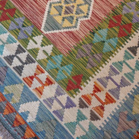 Mazar kilims are great value. They are well made by hand, flatweave wool construction and quite sturdy in use. They benefit from having no loose threads or knots on the back of the rug. This makes them double sided so when one side gets tatty you can flip them over. Customers buy these and put them to many uses. As floor or wall rugs, but also as table covers, picnic rugs, room dividers and so on. We use mazar kilims to cover the Kilim stools that we make.