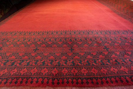 This Hand-knotted Aqcha RUG dimensions are 383cm Length by 300cm Wide.