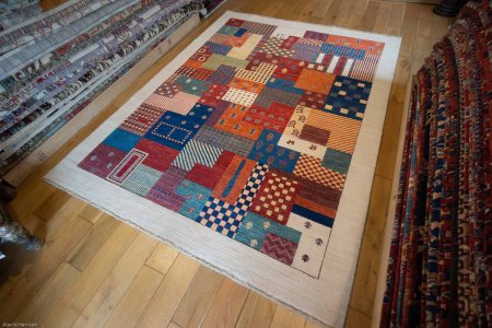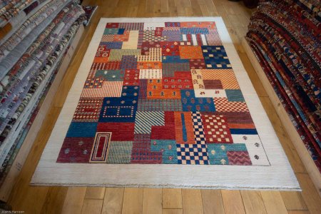 The construction is of a much higher standard than Gabbeh rugs. Far more knots per square inch allow for some intricate designs to be worked. Because of the investment in time and the skill of the weavers the quality of wool used in these rugs is invariably very high. Under close examination the woolen yarn is reflective and a glossy patina is evident in direct sunlight.