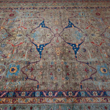 Soft colours, subtlety and muted elegance - these are the attributes of the Sultanabad Ziegler style carpets of today. Entirely hand woven in Afghanistan, these extremely popular rugs are magnificent reproductions of 19th century country house carpets. The influence of designer William Morris can be clearly seen. Great care and attention goes into creating that aged look. The open field designs with no centre medallion proved eminently suitable for the English country house style.