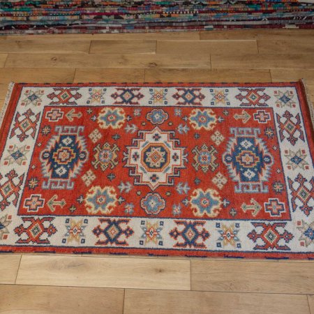 This Hand-knotted Indo Kazak RUG dimensions are 155cm Length by 95cm Wide.