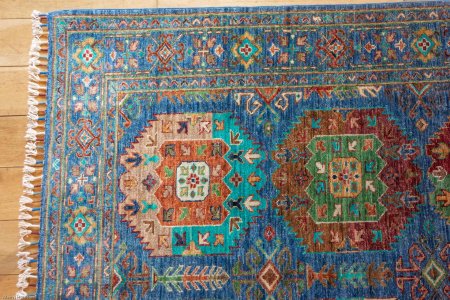 Ersari rugs and runners are woven by Afghan weavers and finishing processes are done in Northern Pakistan. They have a slightly different colouring to the usual red Afghan carpets. The background is brownie red. Similar to a conker. Combined with golds, dark navy and often green, it's a rich warming palette of shades.