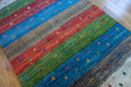 Gabbeh rugs come from southern central Iran. Woven by nomadic travellers that inhabit a large area that include the Zagros mountain range. Most often attributed to the Qashgai people. More likely is that the rugs are woven by any of the tribal groups from the surrounding area. Luri, Khamseh or Afshah. For Gabbeh rugs are coarsely woven with a thick chunky pile They have fat warp and weft threads and that makes them quick to weave. The simplistic freeform designs are much simpler to weave than the traditional Persian rug designs. They are usually woven on horizontal looms that can be quickly staked out on the ground and just as easily taken up when it is time to move camp.
