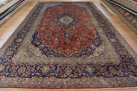 This Hand-knotted Kashan RUG dimensions are 394cm Length by 283cm Wide.