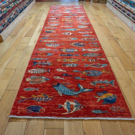 This Hand-knotted Khorjin RUNNER dimensions are 293cm Length by 84cm Wide.