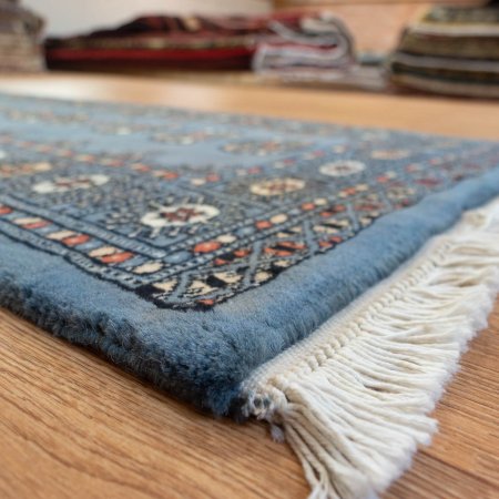 The machine spun wool used for Bokhara hand knotted rugs is washed to a silky shine. The rug is entirely hand made in Pakistan where we buy directly from. Silk like woolen pile is woven on a strong cotton foundation. The traditional "elephants foot" design is simply executed and is ideal where too much pattern would make a room look over fussy. All our Pakistan Bokhara rugs are robust and can withstand heavy wear.
