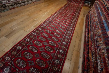This Hand-knotted Bokhara RUNNER dimensions are 485cm Length by 80cm Wide.